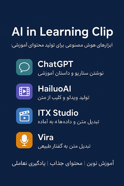 🎥 ساخت کلیپهای آموزشی کامل با ITX Studio و HailuoAI، که متن و سناریوهای شما را به فیلمهای آماده برای کلاس درس تبدیل میکنند.