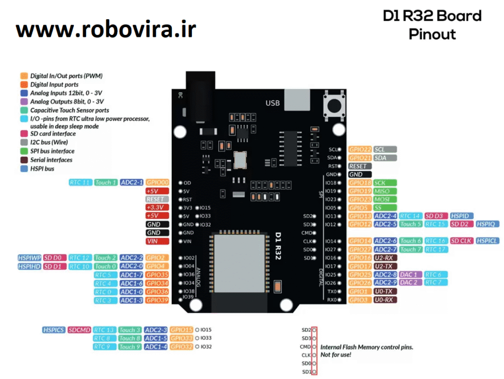 مشخصات برد Wemos D1 R32 (خلاصه)